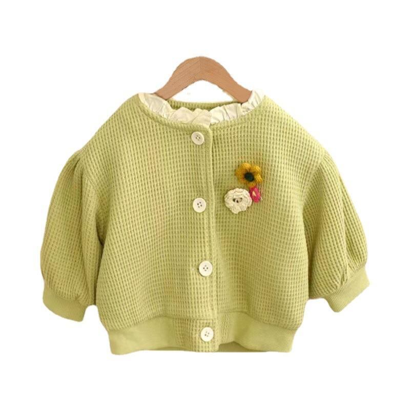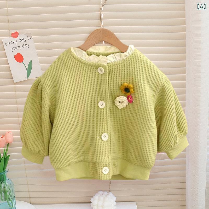 子供服 ニット カーディガン 女の子 ベビー服 春秋 長袖 丸首 コットン 柔らかい かわいい おしゃれ 普段使い 公園 保育園