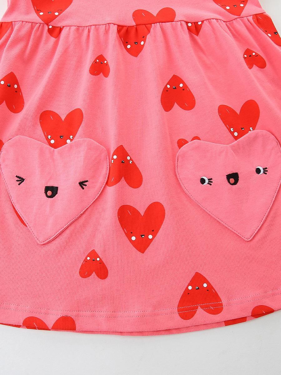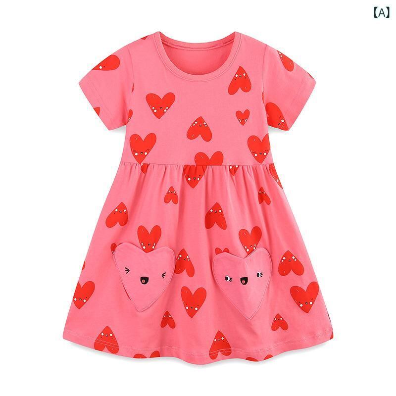 ワンピース 女の子 子供 半袖 プリンセススカート 愛心柄 コットン ニット チュニック かわいい 普段使い お出かけ着 柔らかい おしゃれ 90 100 110 120 125cm