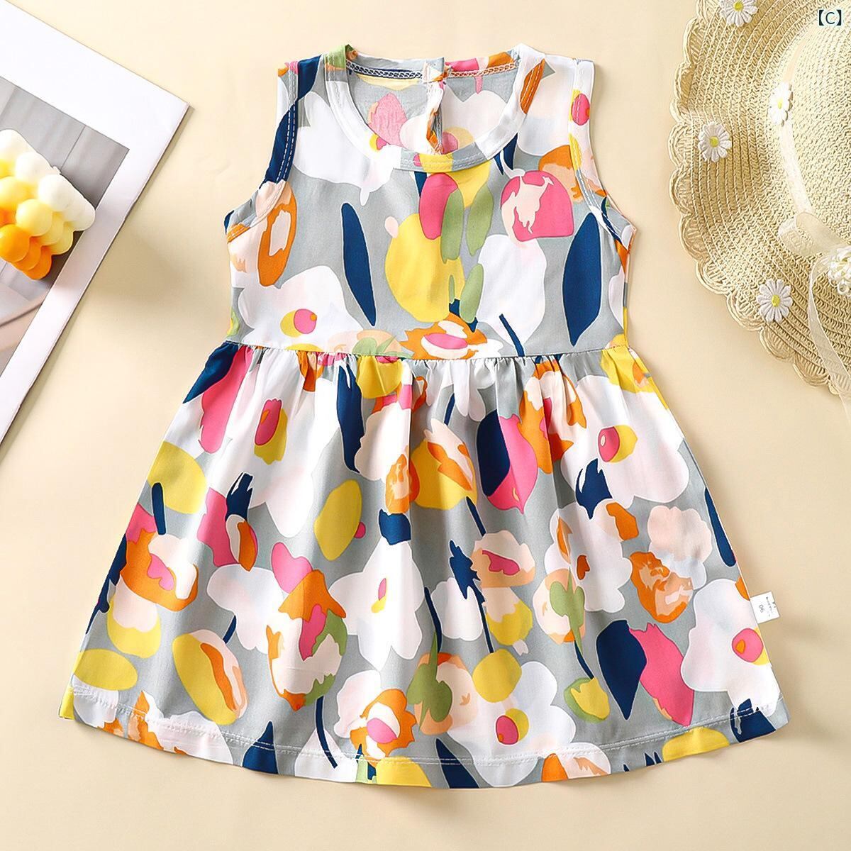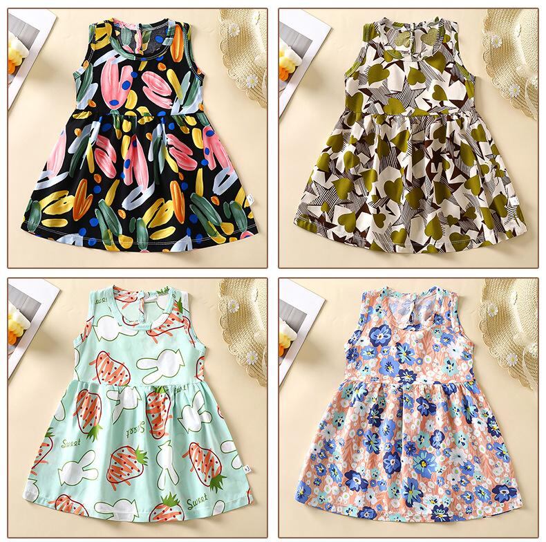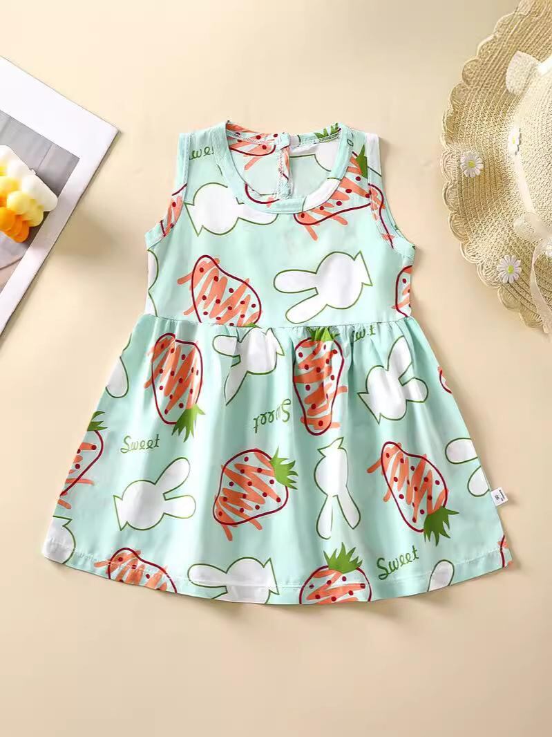 ワンピース ベビー・キッズ 女の子 Aライン 人造綿 接触冷感 かわいい 夏物 チュニック 花柄 ドット アニマル 80 90 100 110 120 130 140