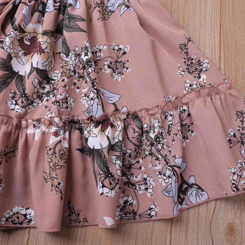 ワンピース 女の子 子供 大花柄 圧着加工 半袖 プリンセススカート 綿混紡 ポリエステル Aライン 膝丈 ピンク系 かわいい 普段使い
