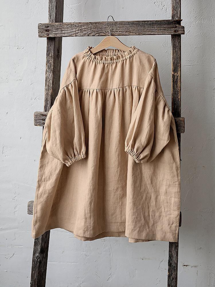 ワンピース 女の子 子供服 チュニック 亜麻 綿 北欧風 フリル 襟 パフスリーブ レトロ プリンセス かわいい 90cm 100cm 110cm 120cm 130cm 春秋 発表会 結婚式