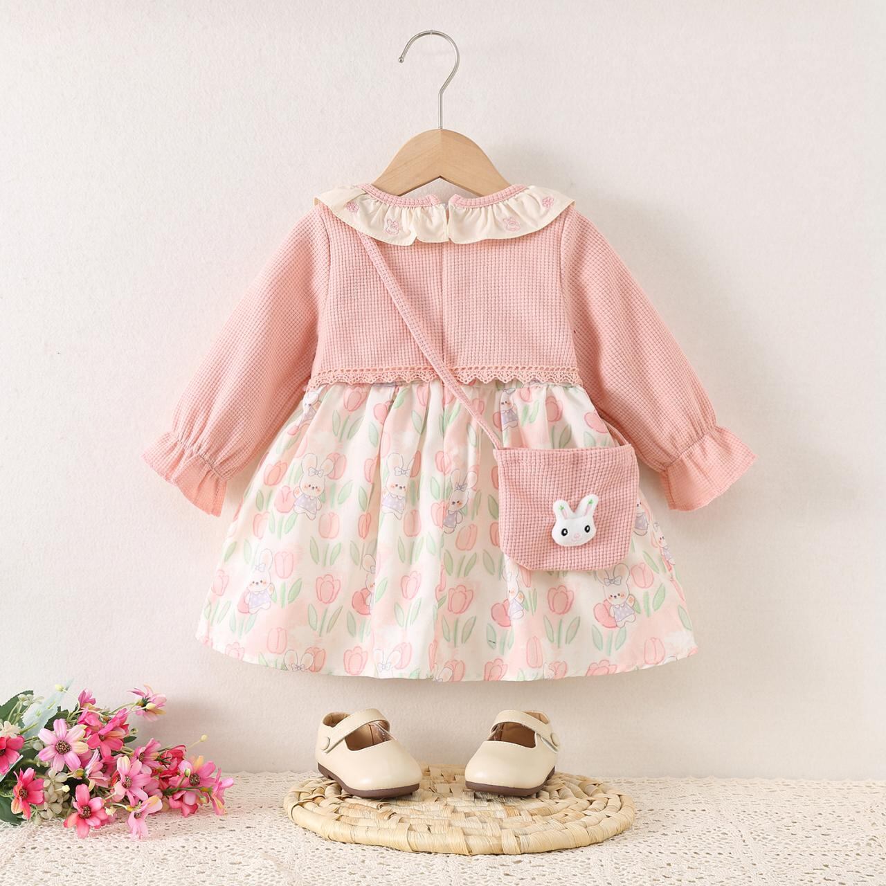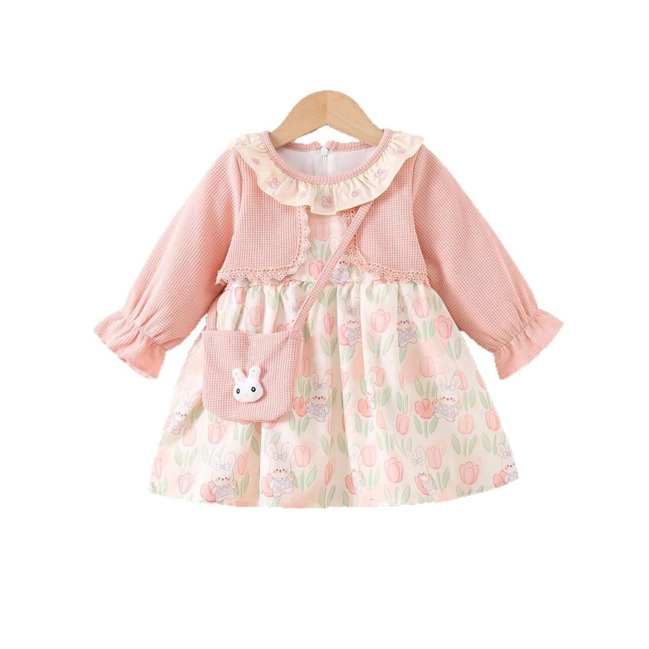 ワンピース キッズ かわいい 春秋 女の子 プリンセス ベビー 子供服 綿80 ピンク系 73 80 90 100cm