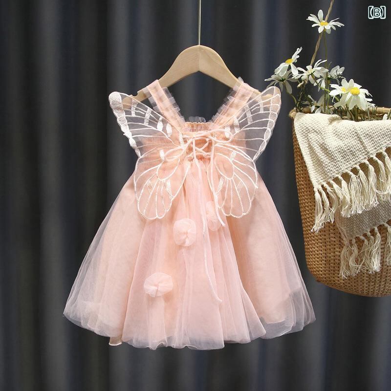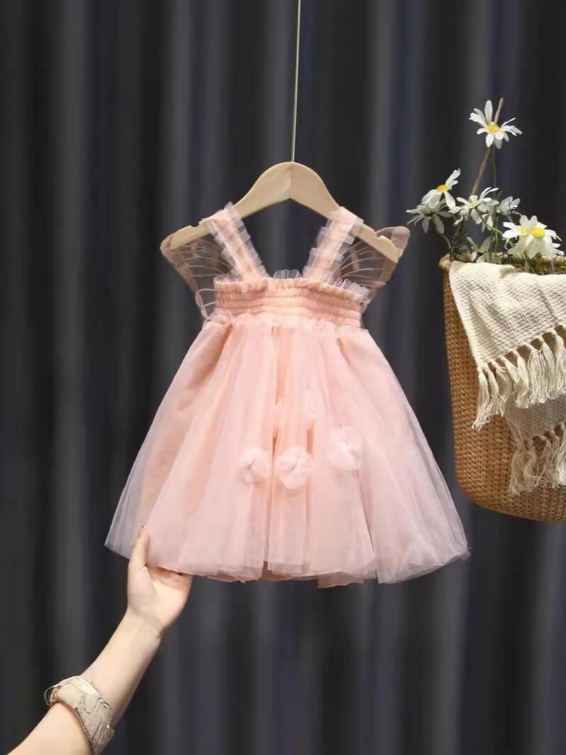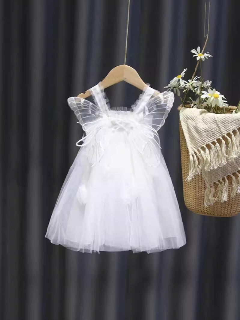 ワンピース キッズ 女の子 子供 天使 プリンセス チュール スカート チュールスカート チュールワンピース パーティー 誕生日 フォーマル かわいい コットン ポリエステル ピンク系 ホワイト 80cm 90cm 100cm 110cm 120cm 1