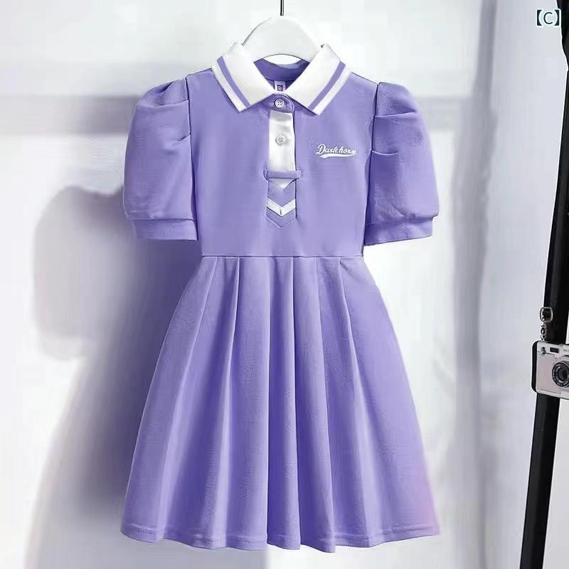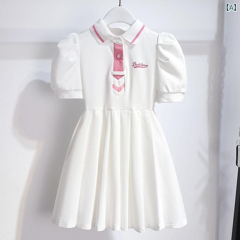 ワンピース キッズ 女の子 半袖 子供服 ポロネック プリーツスカート Aラインスカート かわいい 接触冷感 吸湿速乾 通学 普段使い 春夏 ホワイト ピンク系 パープル