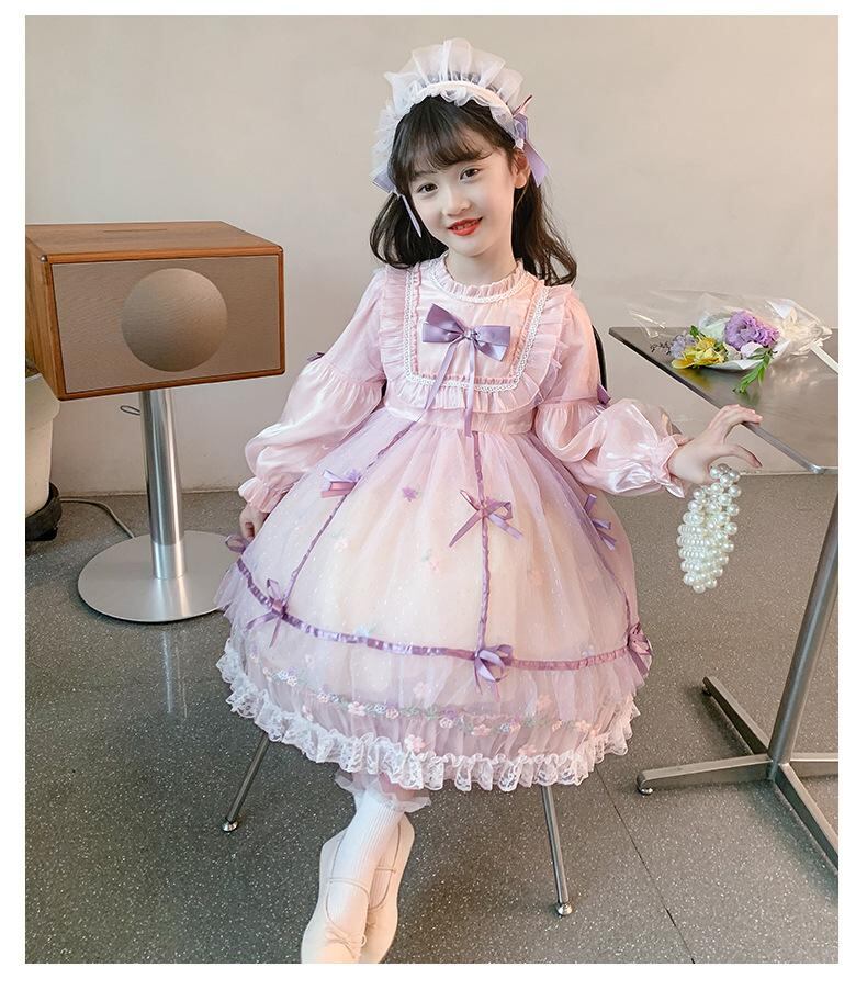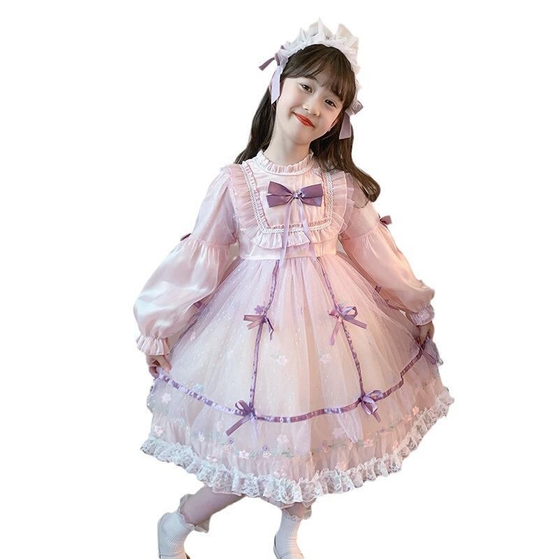 ワンピース 女の子 ロリータ 春秋 子供服 ドレス 小学生 中学生 高校生 フリル ギャザー 発表会 結婚式 パーティー かわいい 姫袖 膝丈 ポリエステル ピンク系