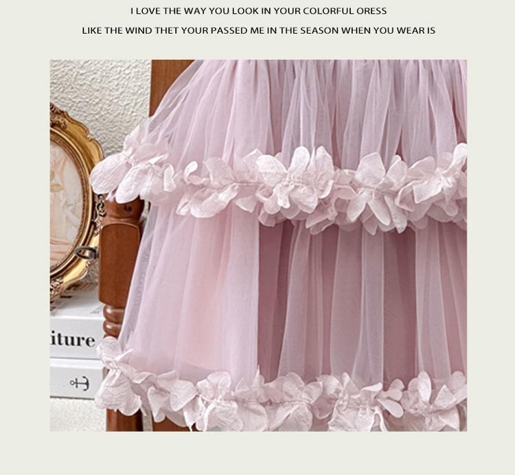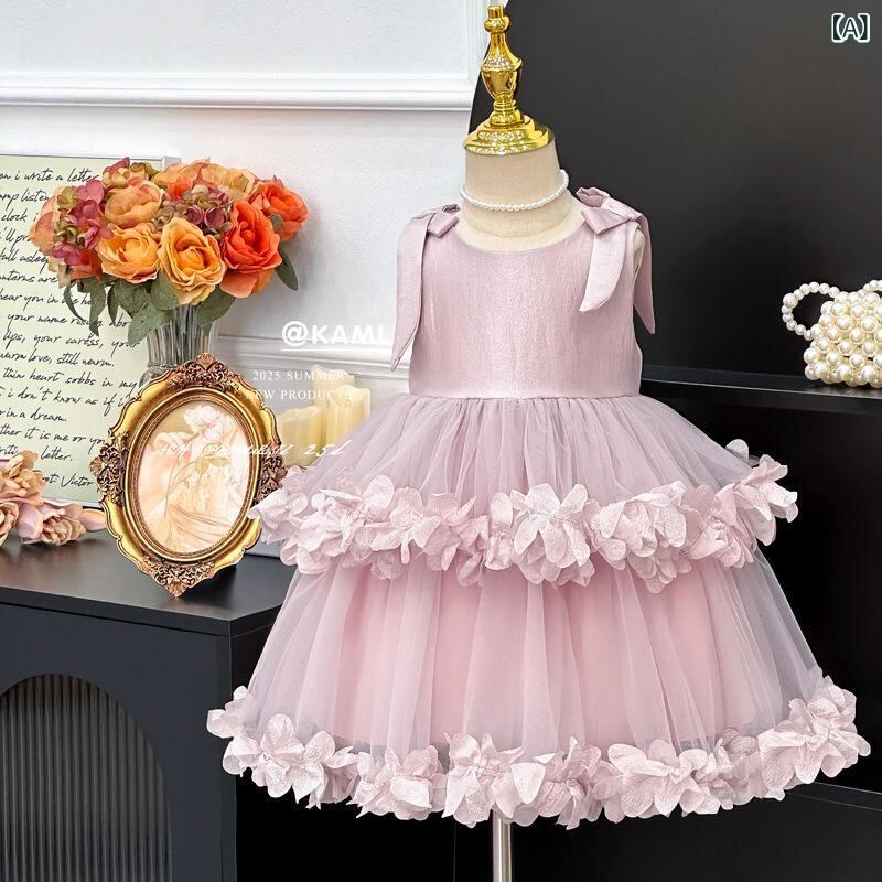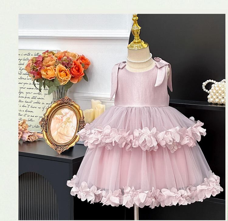 ワンピース 女の子 子供 チュールスカート プリンセスドレス 蝶結び 発表会 結婚式 パーティー かわいい ポリエステル 花柄 裏地綿 90 100 110 120 130 140cm