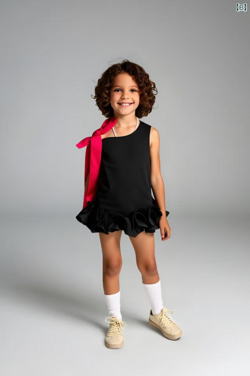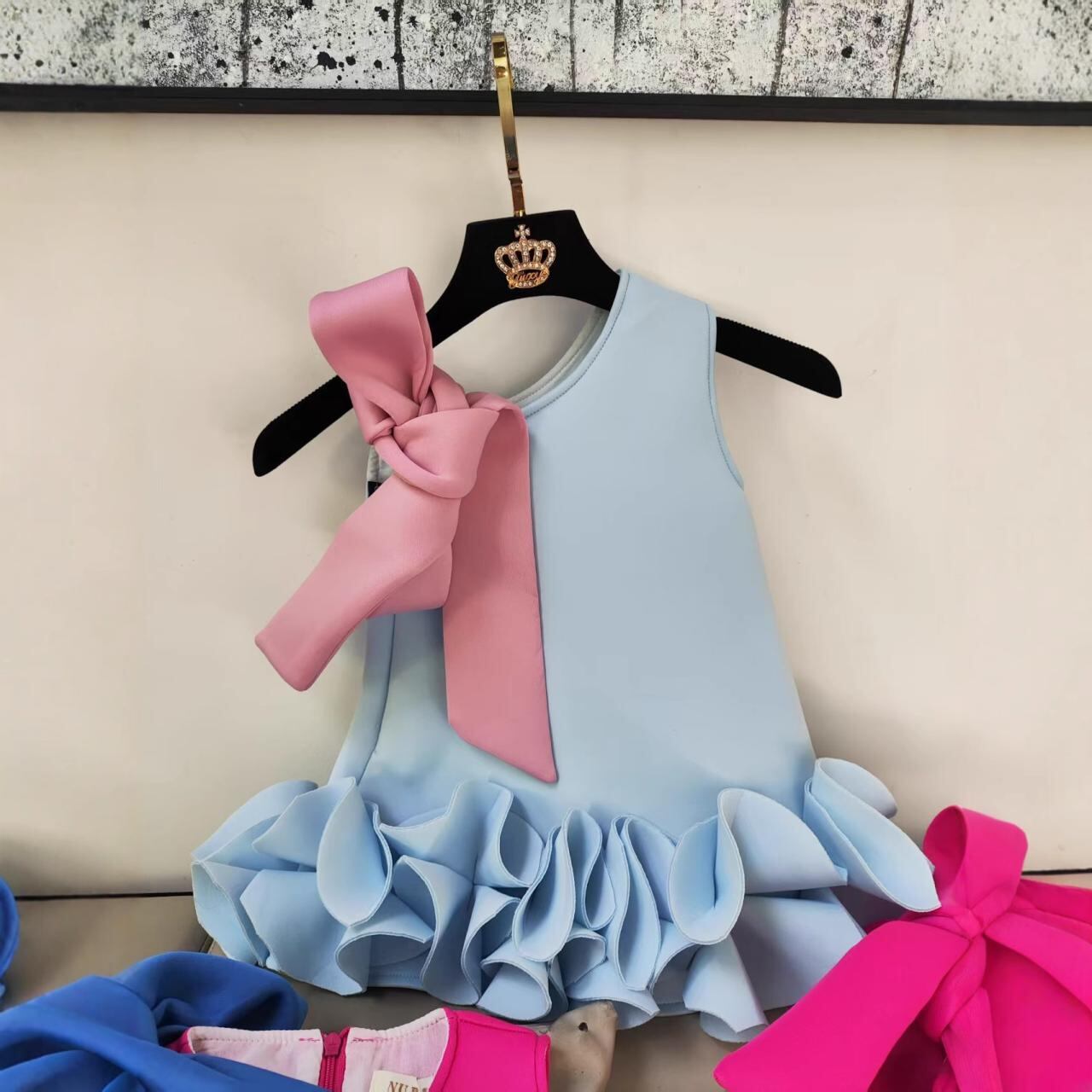 子供服 ワンピース 女の子 ノースリーブ ドーパミンカラー チュールスカート バタフライ リボン プリンセス かわいい 発表会 結婚式 誕生日 パーティー 春夏