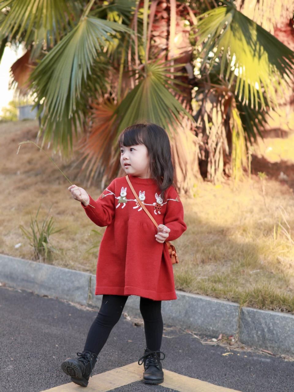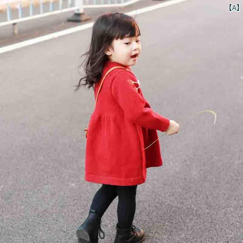 ワンピース キッズ 女の子 ニット 長袖 秋冬 かわいい チュニック プリンセス 赤色 80cm 90cm 100cm 110cm 120cm 130cm