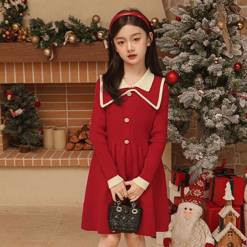 ワンピース 子供服 ニットワンピース 女の子 プリンセスドレス Aライン 膝丈ワンピース 秋冬 チュールスカート かわいい おしゃれ 裏地付き コットン 発表会 結婚式 パーティー お呼ばれ