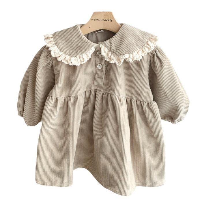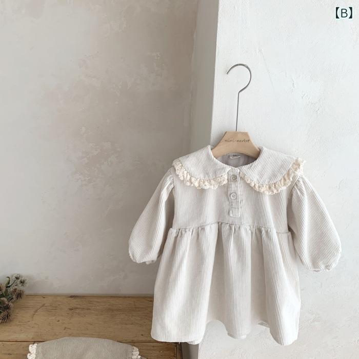 ワンピース 女の子 春秋 チュニック Aライン 長袖 襟付き コーデュロイ かわいい 73cm 80cm 90cm 100cm 灰咖色 米白色 栗色 普段使い お出かけ
