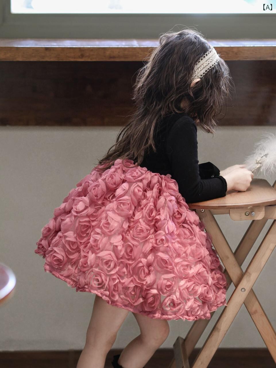 ワンピース キッズ 女の子 秋冬 ローズ チュール ベストワンピース 裏起毛 発表会 パーティードレス かわいい