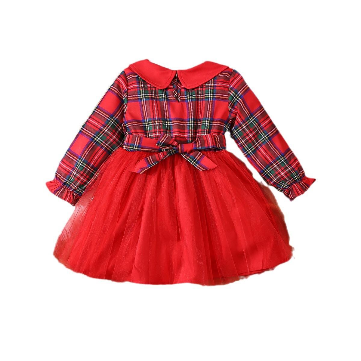 子供用ワンピース 春秋 長袖 プリンセス チェック柄 コットン チュニック 女の子 かわいい ガールズ キッズ 膝丈 ミディアム丈 90cm 100cm 110cm 120cm 130cm レッド グリーン