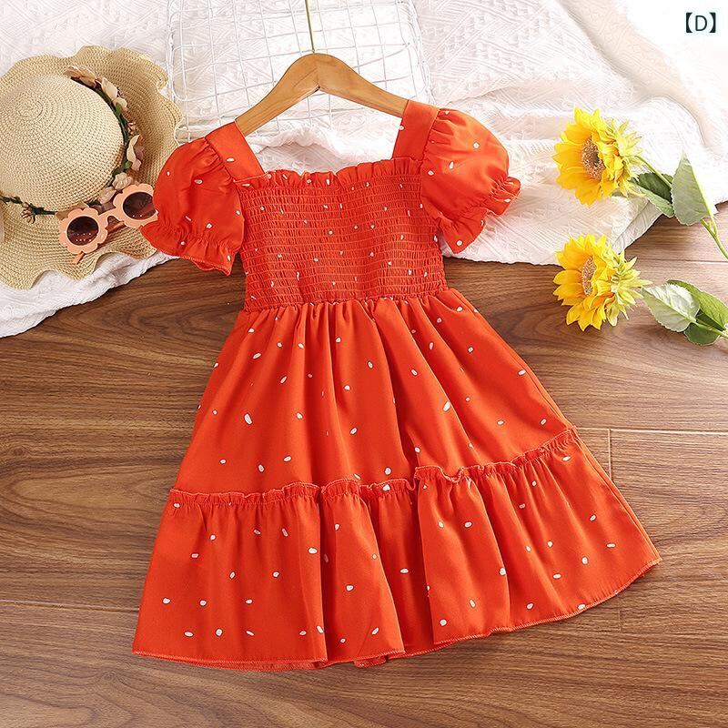 ワンピース キッズ 子供服 女の子 半袖 プリンセススカート 水玉 ドット柄 かわいい おしゃれ 接触冷感 涼しい 薄手 夏 ブルー パープル レッド オレンジ