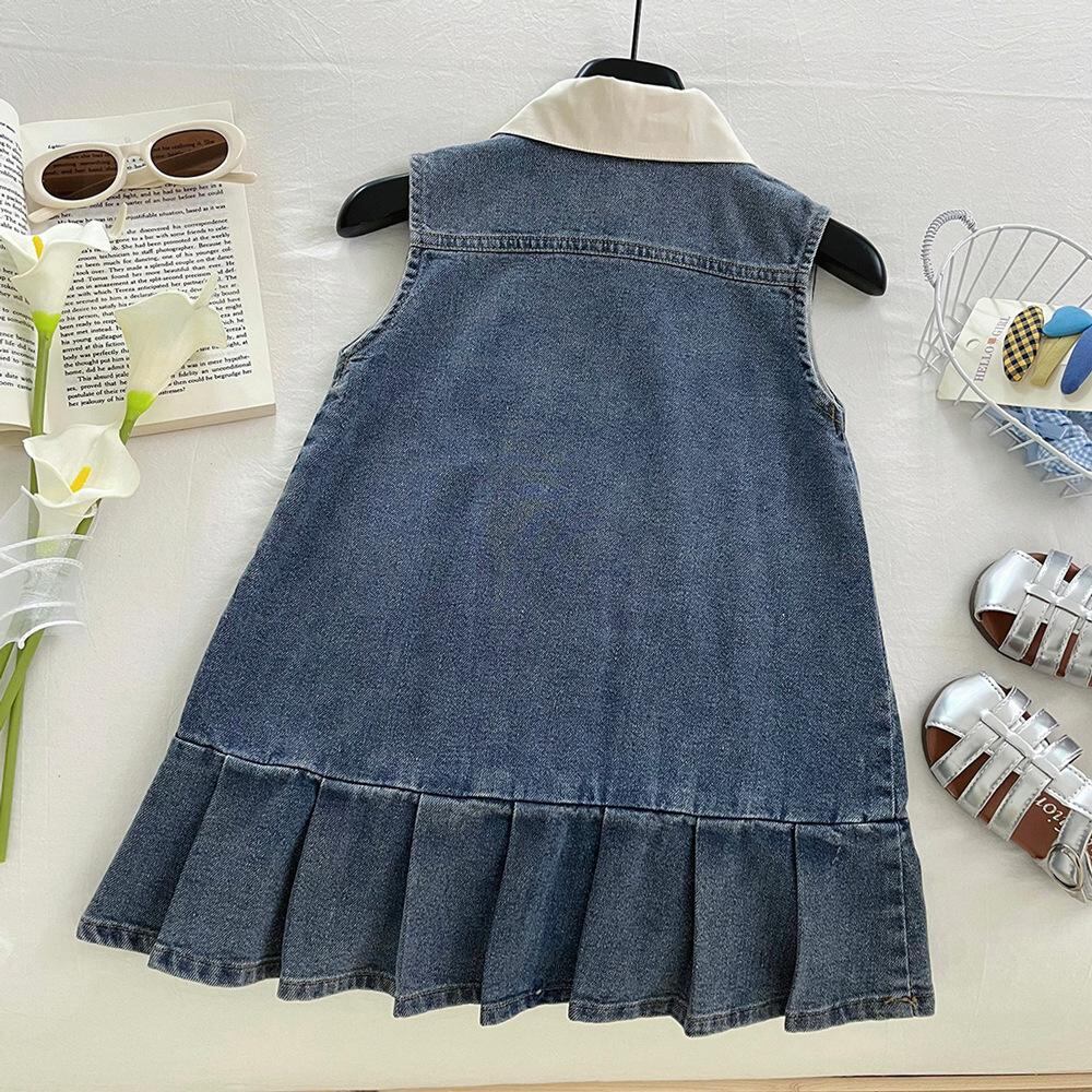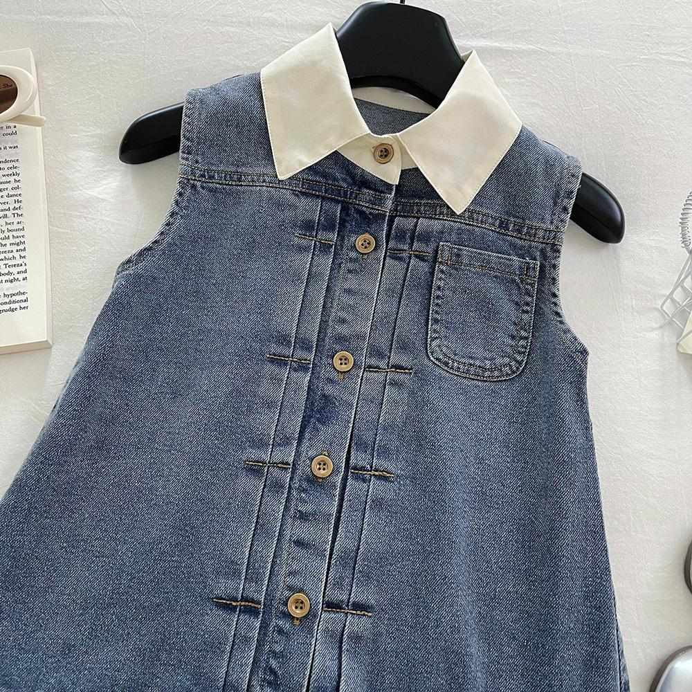 ワンピース キッズ 女の子 デニム ノースリーブ 春夏 子供 ポロ襟 かわいい 切り替え 普段使い 柔らかい