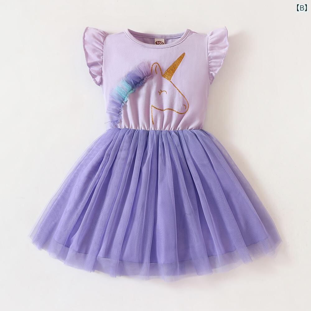 ワンピース 子供服 女の子 夏 半袖 プリンセス チュールスカート Aライン かわいい 膝丈 コットン 薄手 通園 発表会 ピンク系 パープル系