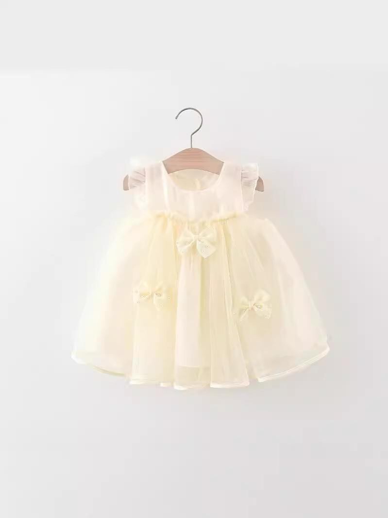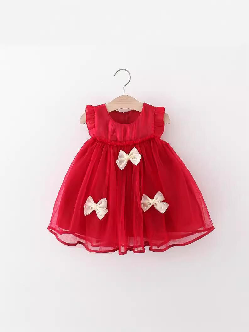 ワンピース キッズ 女の子 礼服 プリンセスドレス 半袖 チュールスカート 蝶結び かわいい 80 90 100 110 春夏 ポリエステル 綿 米白色 赤色