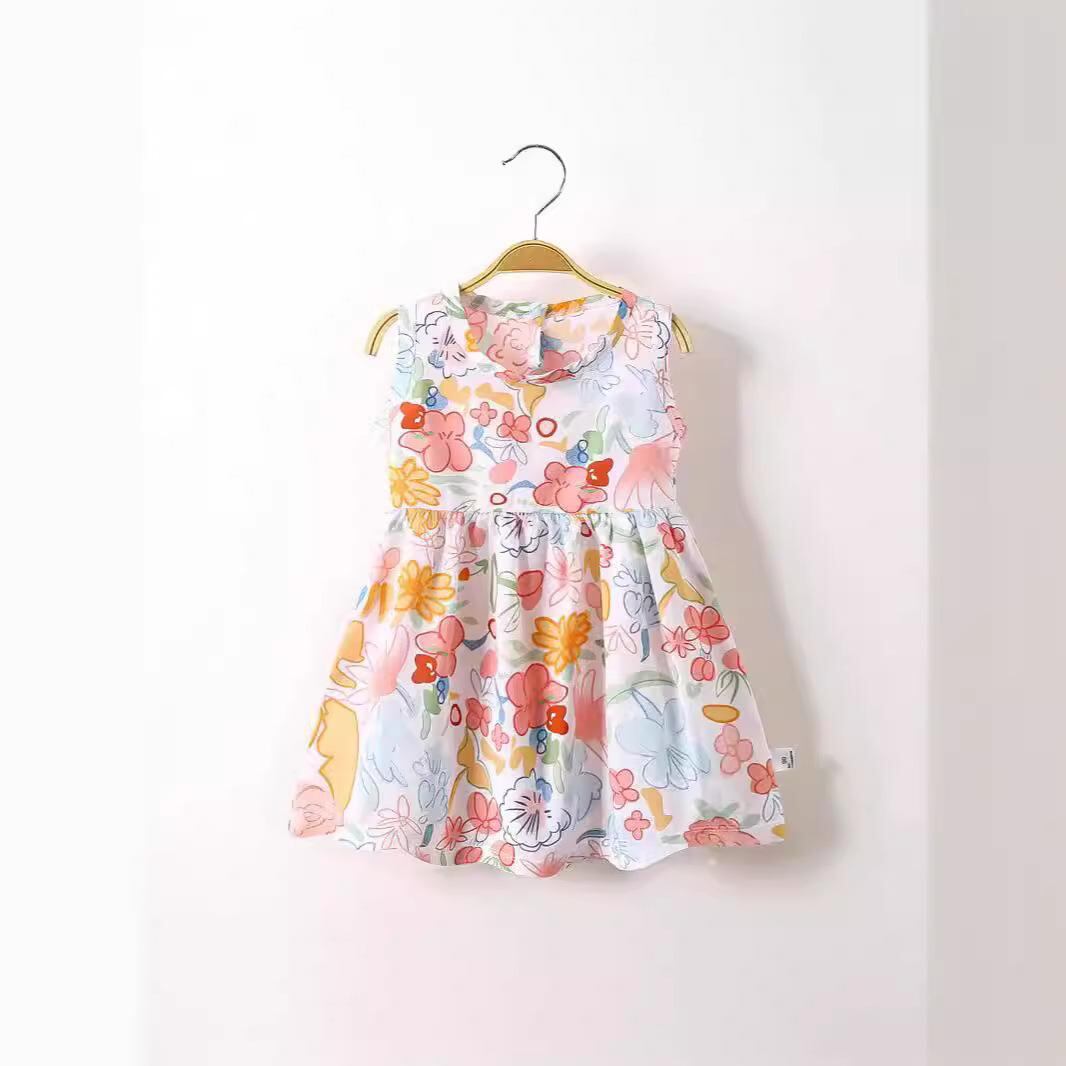 ワンピース 女の子 子供服 プリンセス Aライン 膝丈ワンピース ドット柄 花柄 かわいい 綿 春夏 80cm 90cm 100cm 110cm 120cm 130cm 140cm