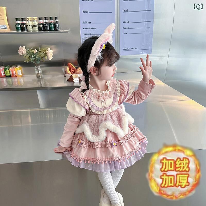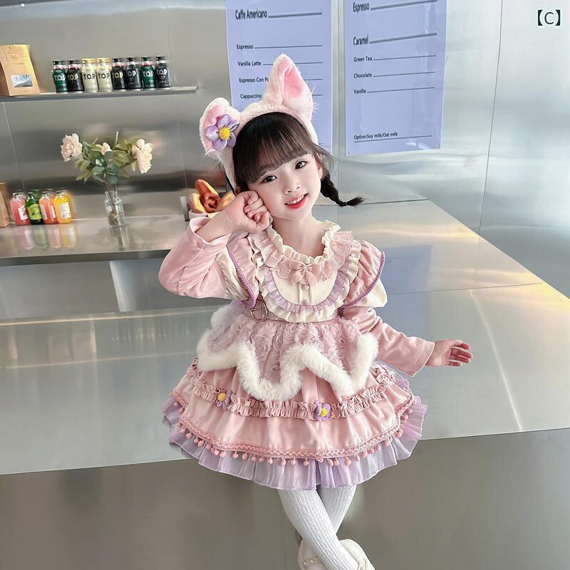 ワンピース 女の子 子供 ロリータ 春秋 長袖 ニットワンピース 礼服 かわいい 公主風 チュールスカート
