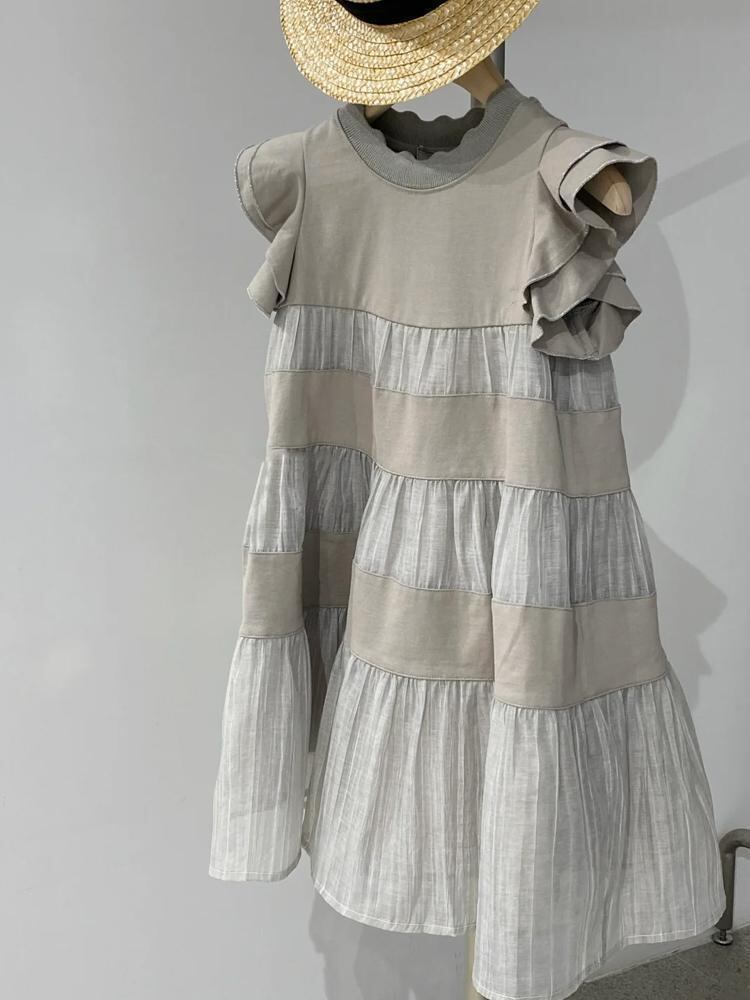 ワンピース キッズ 女の子 半袖 Aライン フリル 膝丈 子供服 おしゃれ かわいい 切り替え 発表会 結婚式 パーティー お呼ばれ 普段着 ポリエステル