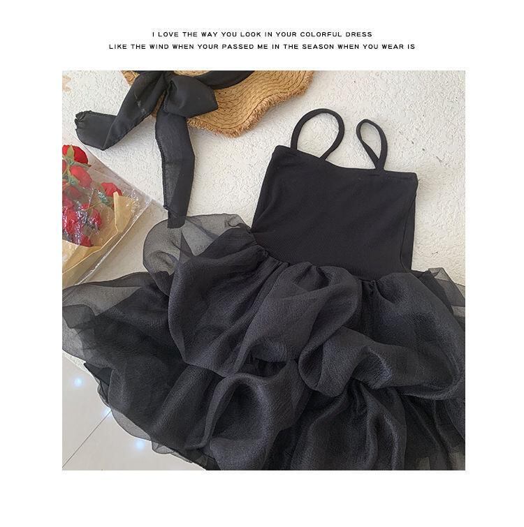 ワンピース キッズ 女の子 子供服 キャミソールワンピース Aライン 膝丈 かわいい コットン混紡 春夏 ブラック 80cm 90cm 100cm 110cm 120cm 130cm