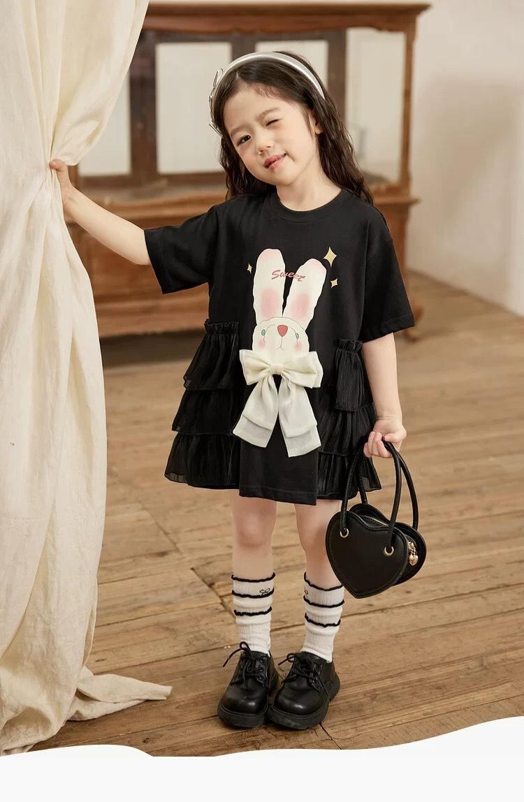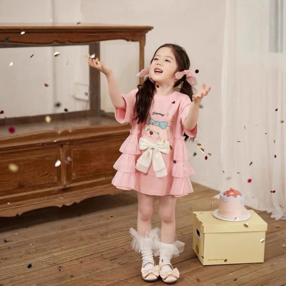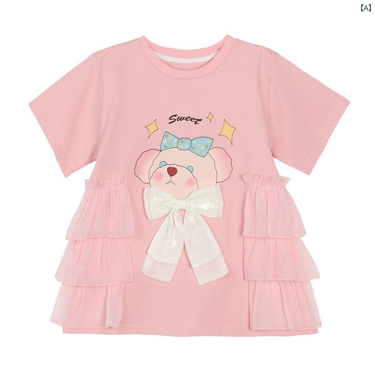 子供服 ワンピース 女の子 半袖 Tシャツ 夏 子供 夏服 トップス チュニック Aライン かわいい 普段使い ポリエステル ピンク系 ブラック