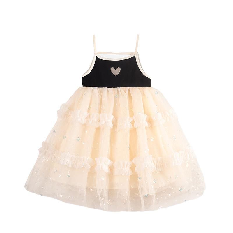 ワンピース キッズ 子供服 女の子 プリンセス Aライン チュールスカート キャミソールワンピース かわいい ポリエステル ブラック系 夏