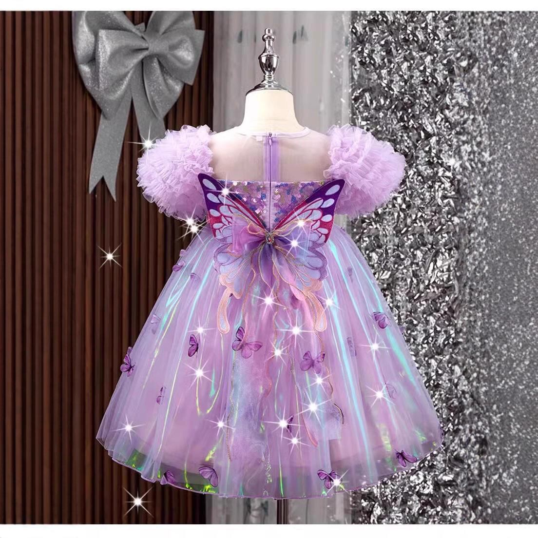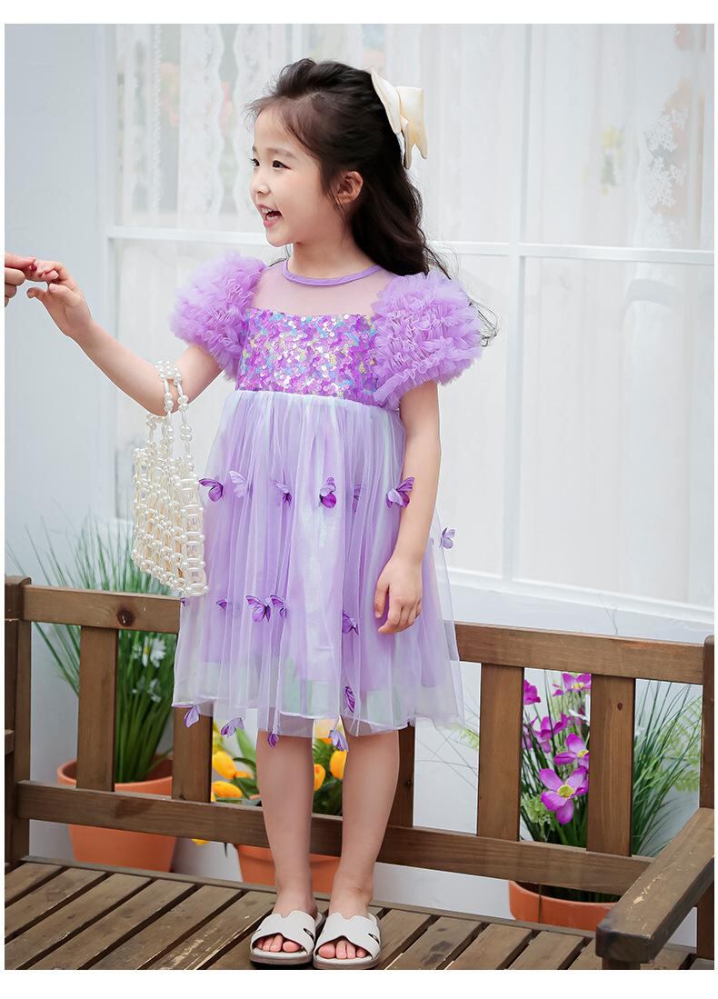 ワンピース 女の子 子供 プリンセス パープル スカート チュール スリーブ B類 ポリエステル 発表会 演奏会