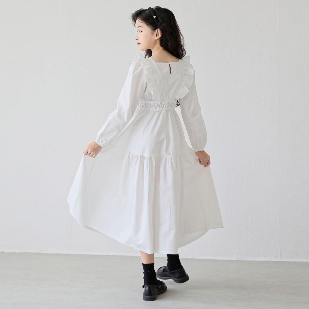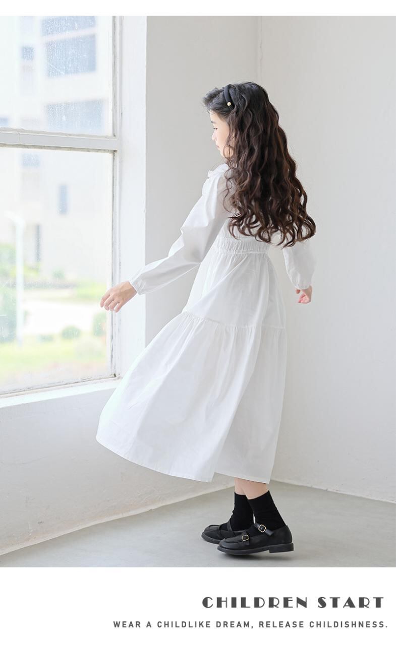 ワンピース キッズ 女の子 長袖 花柄 コットン レース Aライン ロング丈 春秋 かわいい おしゃれ ガールズ 子供服 発表会 結婚式 パーティー お出かけ着