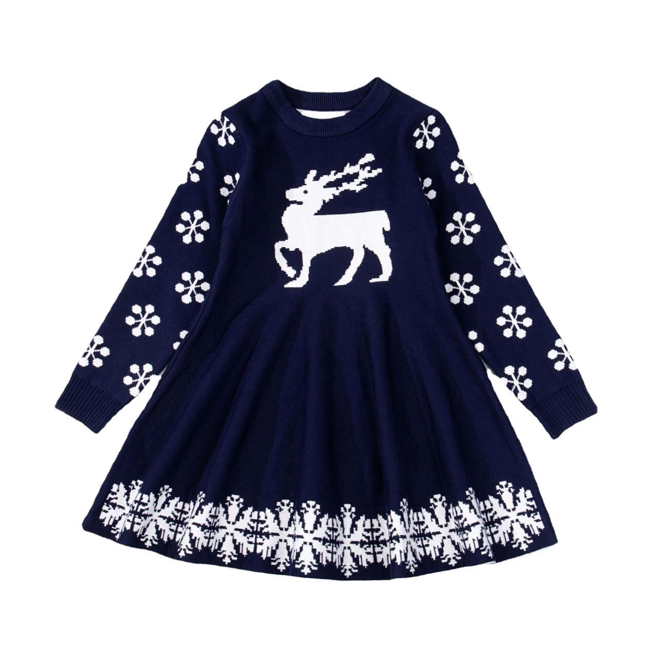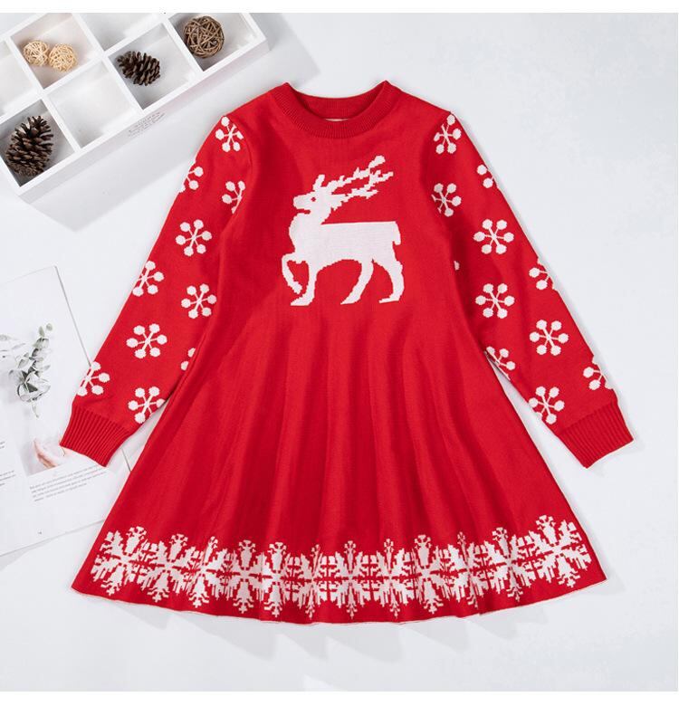 ワンピース ガールズ キッズ 子供服 ニット 秋冬 クリスマス 小鹿 Aライン 宝 ब्लू 赤 かわいい 普段使い