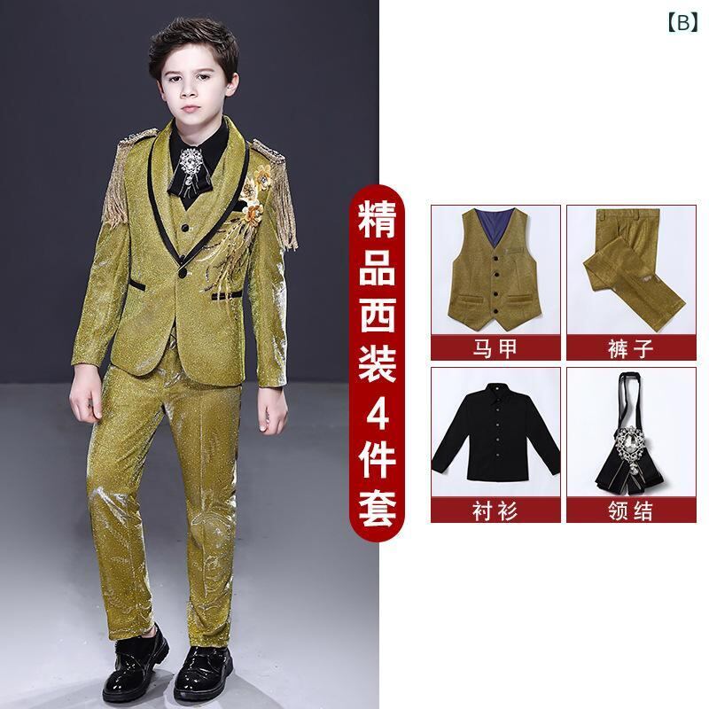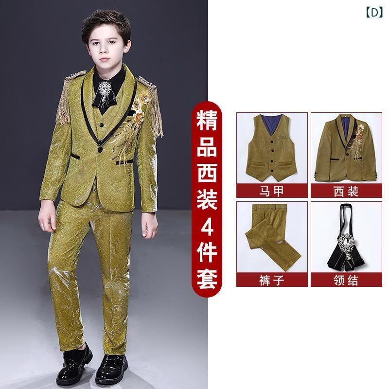 子供用フォーマルスーツ 男の子用タキシード 上下セット 蝶ネクタイ付き 子供用スーツ ジャケット パンツ シャツ ベスト付き 英国風 結婚式 発表会 演奏会 入学式 卒業式 卒園式 七五三 フォーマルウェア ポリエステル