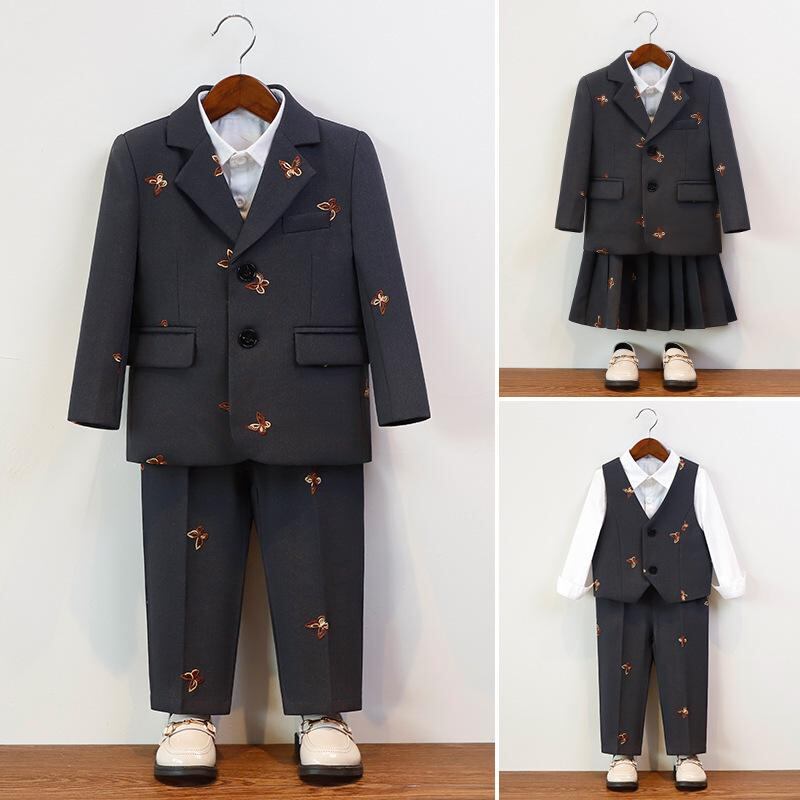 子供用フォーマルスーツ 秋冬用 男の子 女の子 スーツセット ジャケット ベスト パンツ スカート 子供服 学院風 発表会 演奏会 結婚式 七五三 入学式 卒業式 ポリエステル