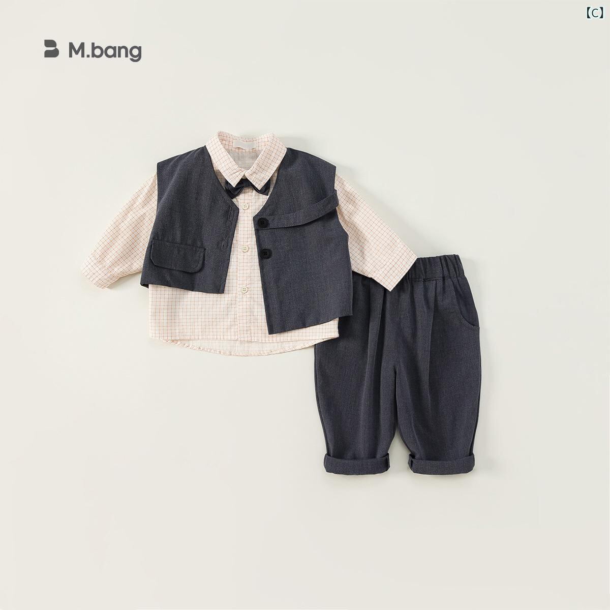 子供用フォーマルスーツ 春秋物 男の子用ベスト付きスーツ3点セット 英国風 子供服 ポリエステル 格子柄 無地 グレー系 ベージュ系 入園式 卒園式 発表会 普段使い