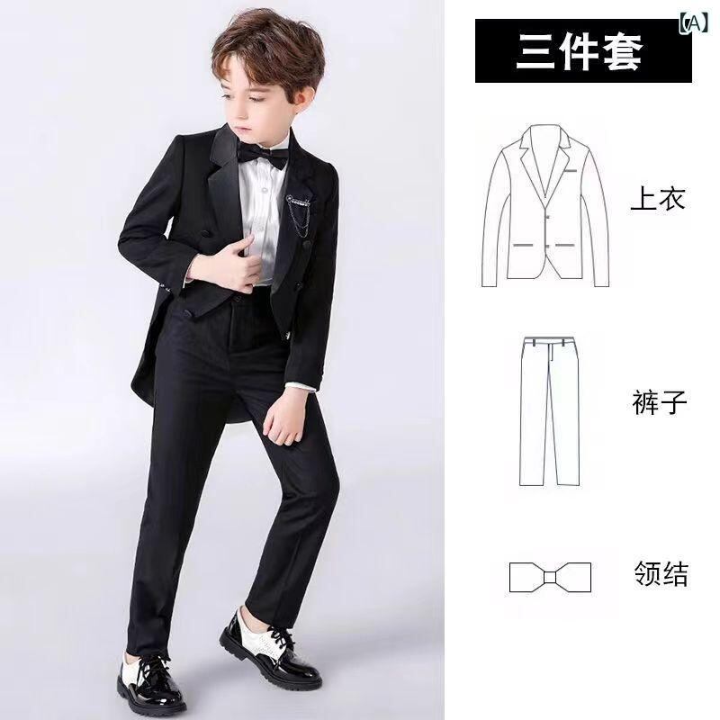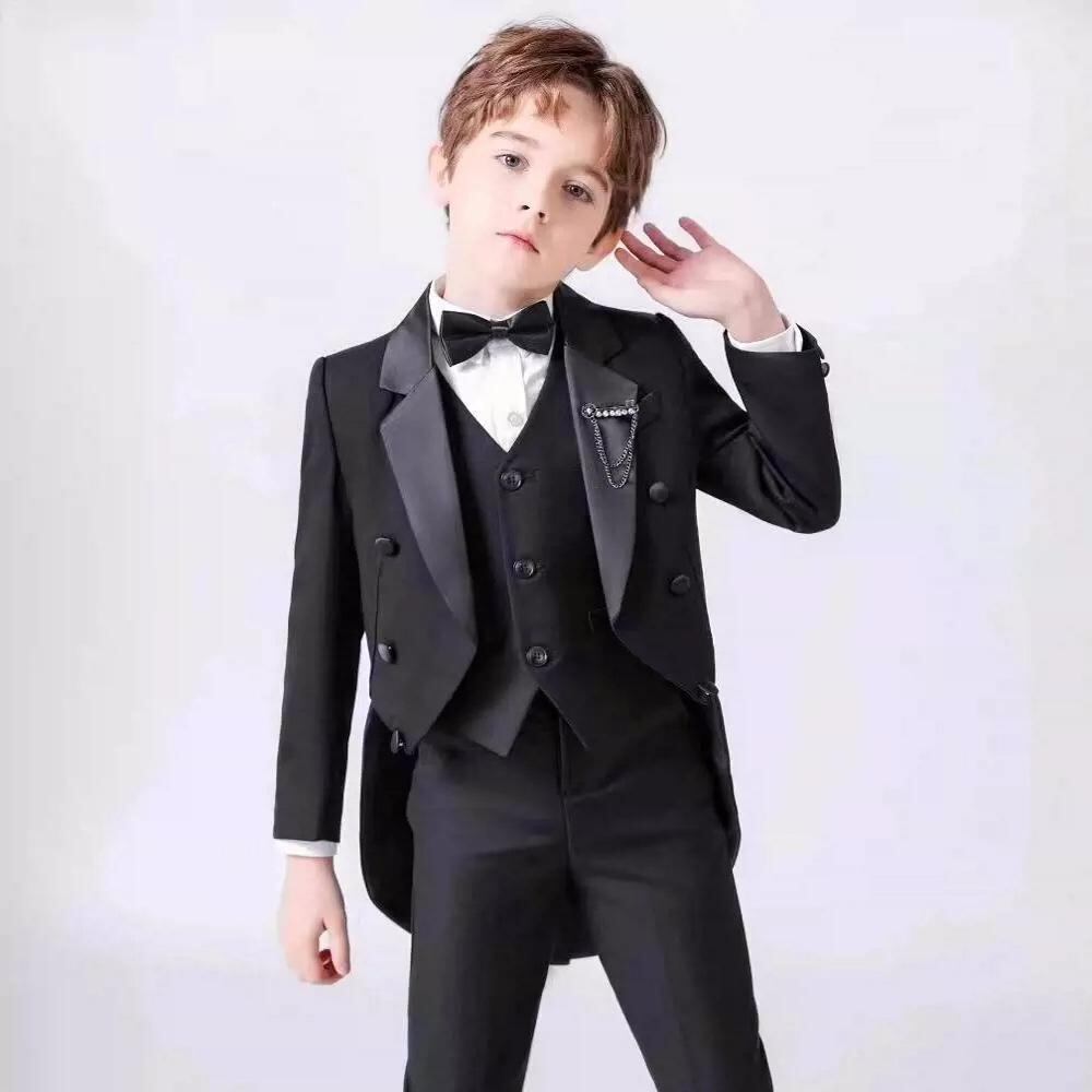 キッズ フォーマルスーツ 男の子 子供用 タキシード 燕尾服 ピアノ 発表会 演奏会 結婚式 ジャケット パンツ シャツ ベスト 4点セット 春秋冬