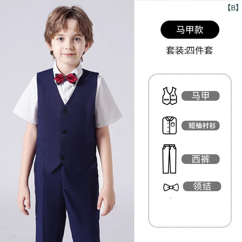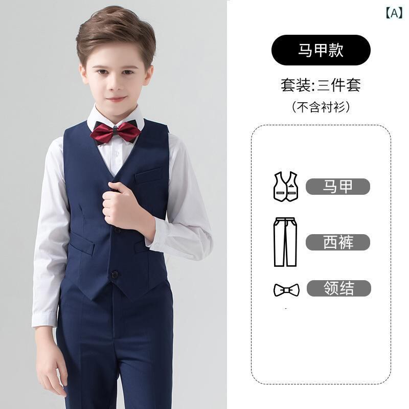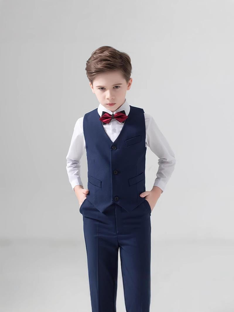 キッズ フォーマル スーツ 男の子 子供用 礼服 合唱 ピアノ 発表会 衣装 セットアップ ジャケット ベスト パンツ シャツ ズボン 結婚式 七五三 卒園式 入学式 90 100 110 120 130 140 150 160 170 センチ 紺色 黒