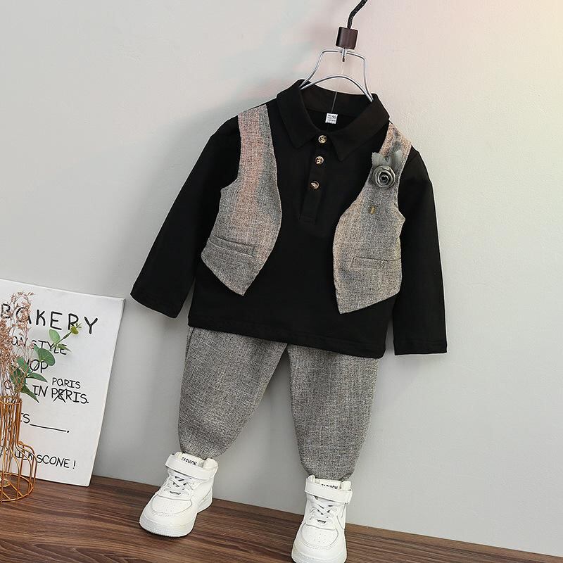 キッズ フォーマルスーツ 男の子 春秋 セットアップ 長袖 礼服 グレー 上下セット 子供服 おしゃれ 結婚式 発表会 七五三
