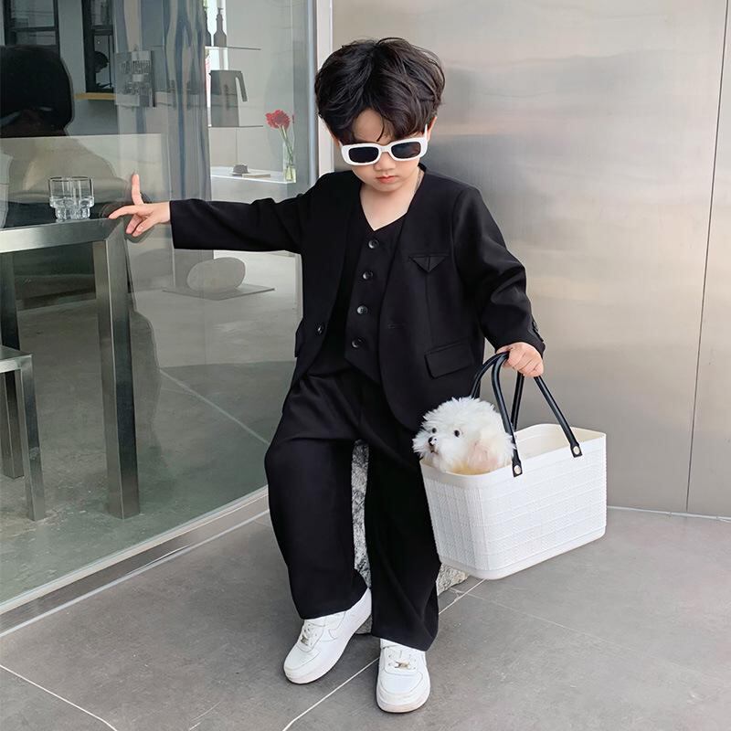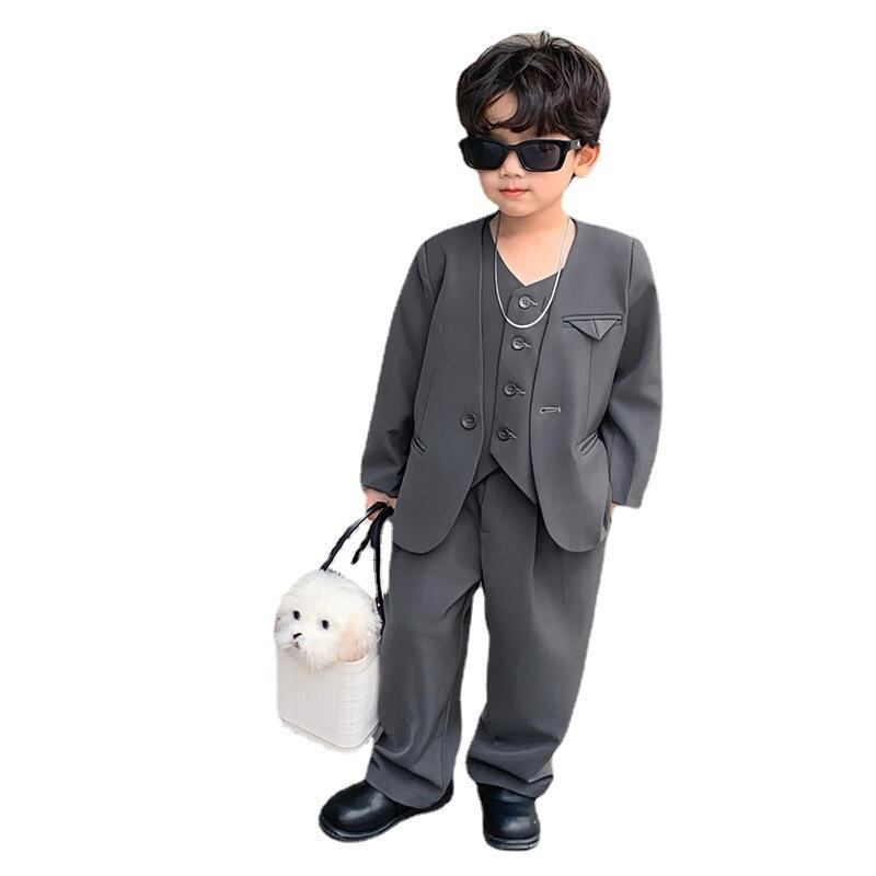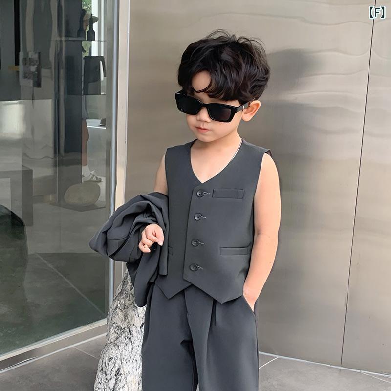 子供用フォーマルスーツ:男の子用 スーツ ジャケット ベスト パンツ 3点セット,Vネック,無地,綿混紡,伸縮性,通気性,90cm 100cm 110cm 120cm 130cm 140cm 150cm 160cm,春 秋