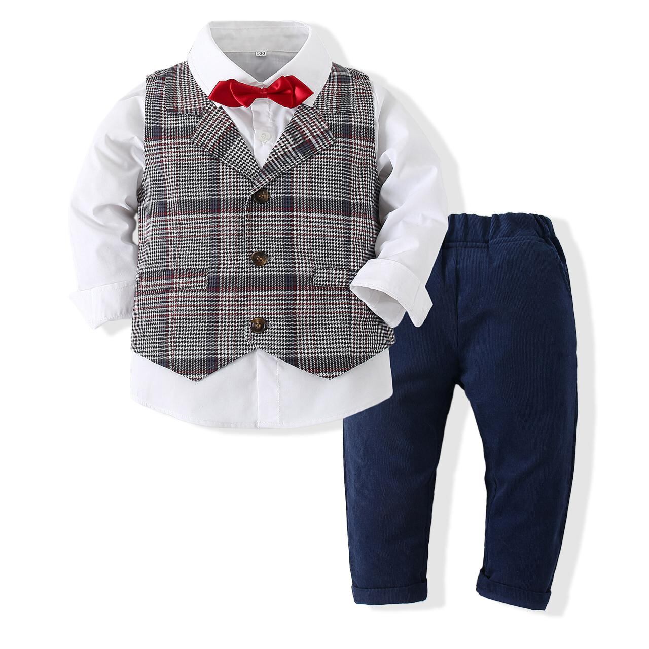 キッズ フォーマル スーツ 男の子 3点セット 子供用 無地 ベスト パンツ 長袖シャツ 結婚式 発表会 演奏会 入園式 卒園式 春秋