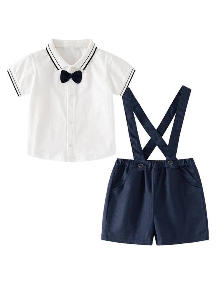 キッズ 男の子 フォーマルスーツ 夏用 半袖 短パン 上下セット 1歳 誕生日 結婚式 発表会 コットン 薄手 70 80 90 100
