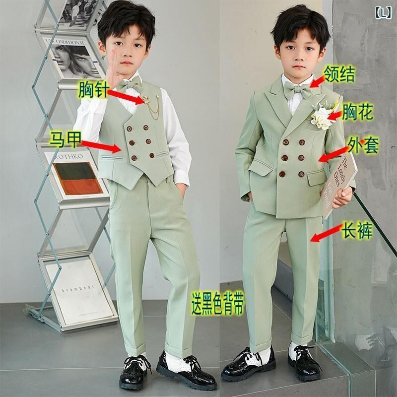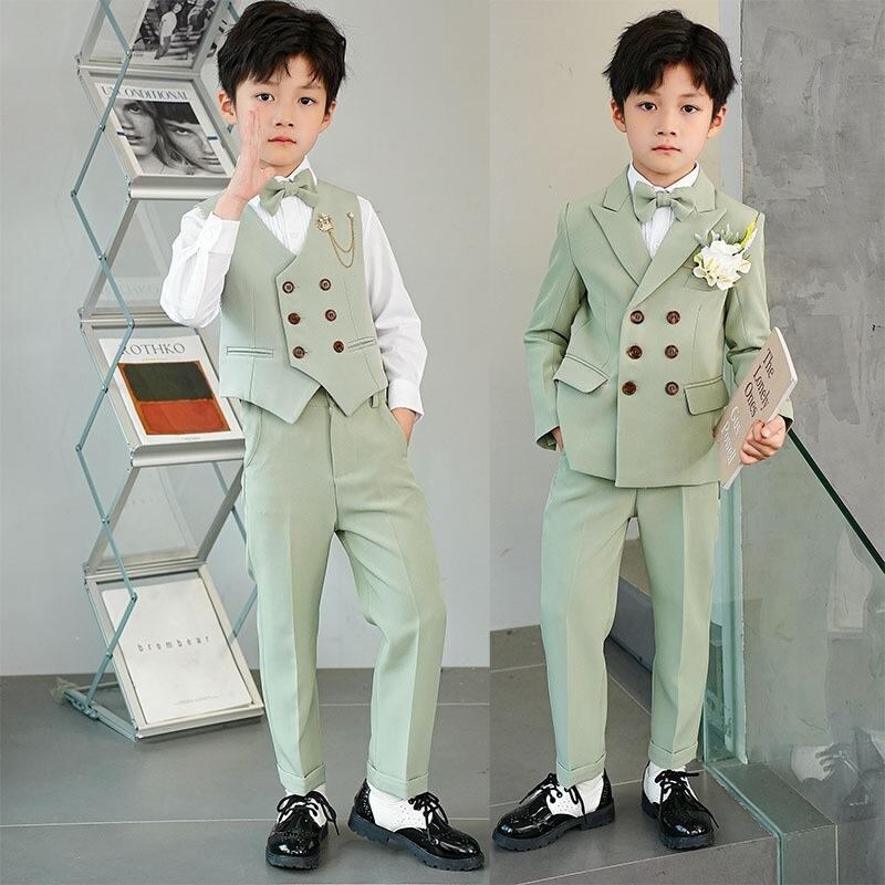 キッズ フォーマル スーツ 男の子 子供用 タキシード セットアップ ピアノ 発表会 演奏会 結婚式 パーティー ジャケット パンツ シャツ ベスト 蝶ネクタイ ブローチ付き