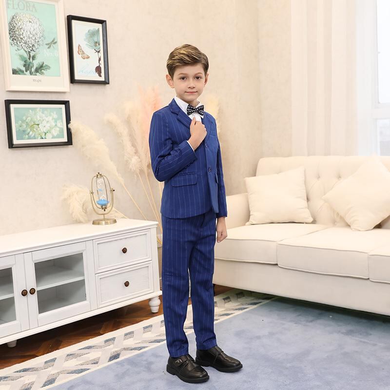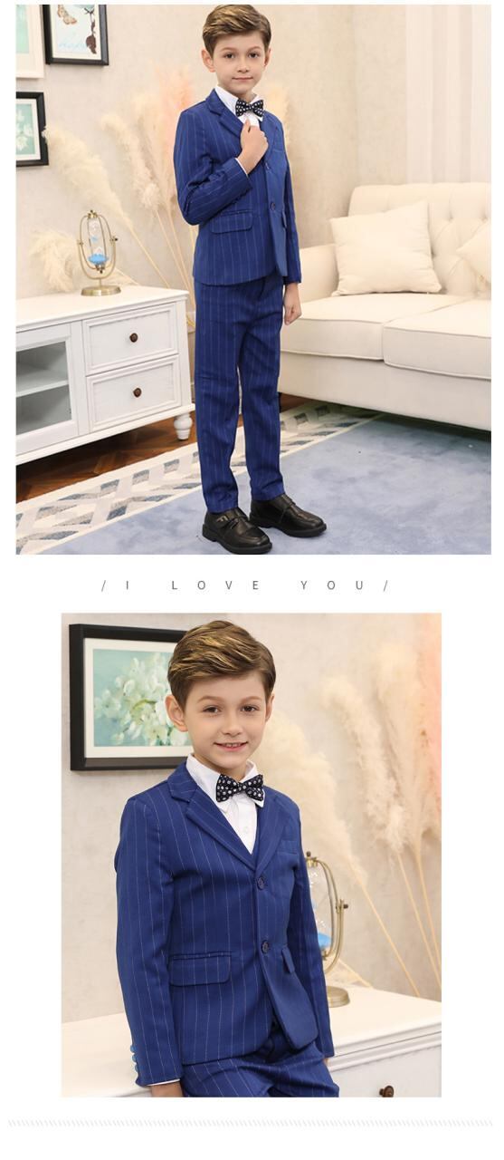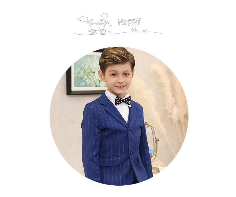 キッズ フォーマル スーツ 男の子 子供用 タキシード 3点セット (ジャケット、パンツ、ベスト) 結婚式 発表会 七五三 卒園式 入学式 卒業式 舞台衣装 ストライプ柄 上品