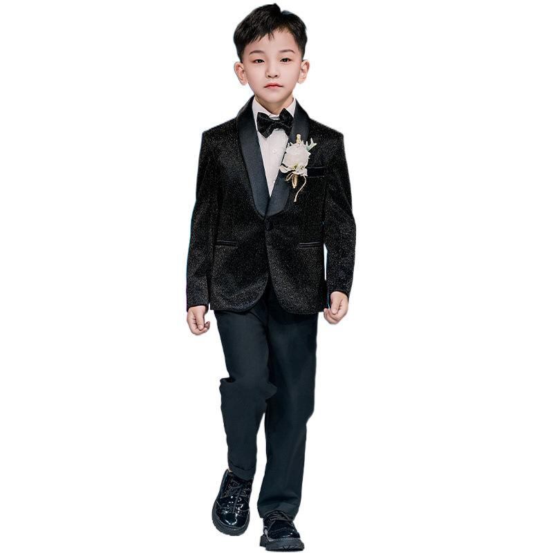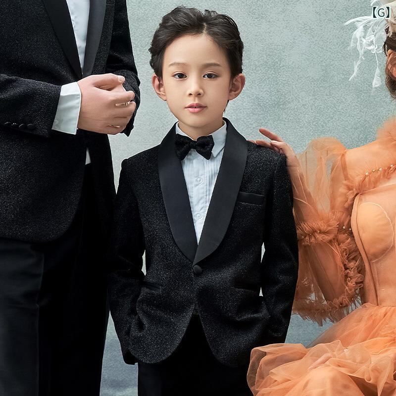 子供用スーツ 黒色セットアップ 男の子 司会者 コンクール 花婿の介添え 礼服 小さな男の子 誕生日 パーティー 発表会 スーツ 上下セット ジャケット パンツ 蝶ネクタイ コットン 現代的 ミニマリスト スタイル