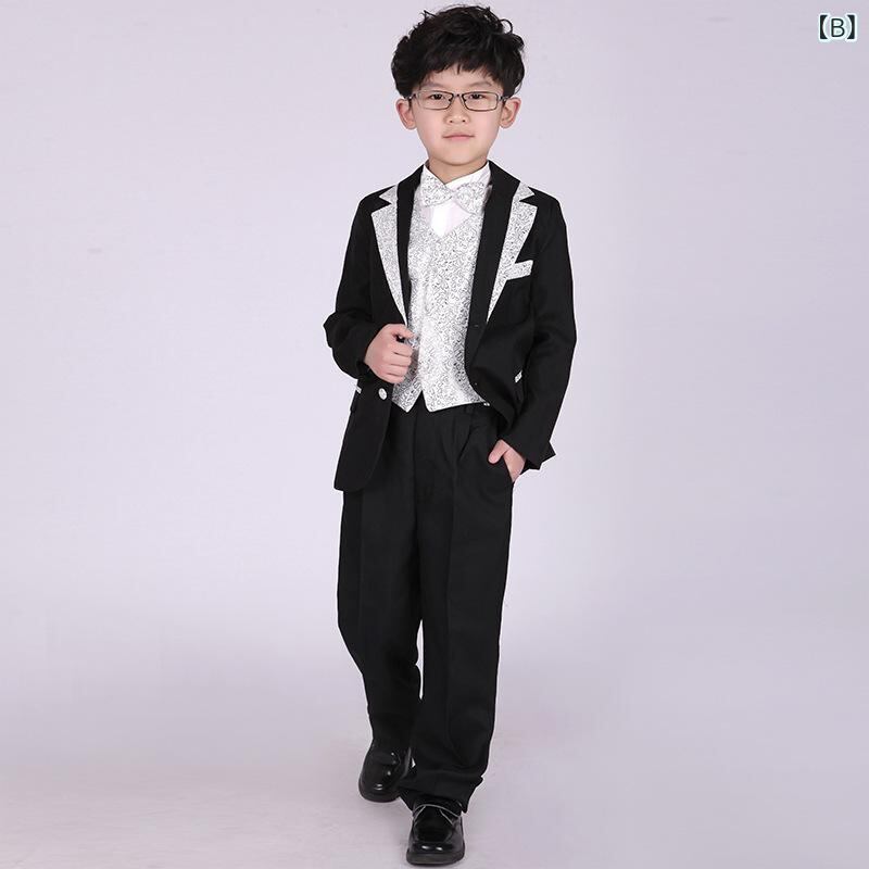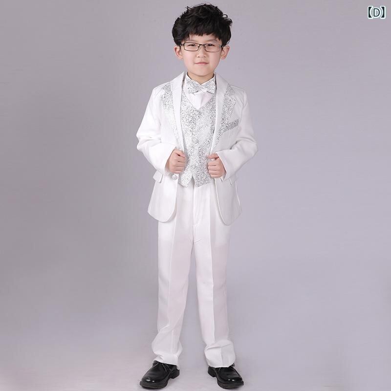 子供用フォーマルスーツ 男の子用礼服 セットアップ 花婿衣装 結婚式 舞台衣装 小学生 90cm 100cm 110cm 120cm 130cm 140cm ポリエステル ブラック 黒 ホワイト 白 春夏秋冬