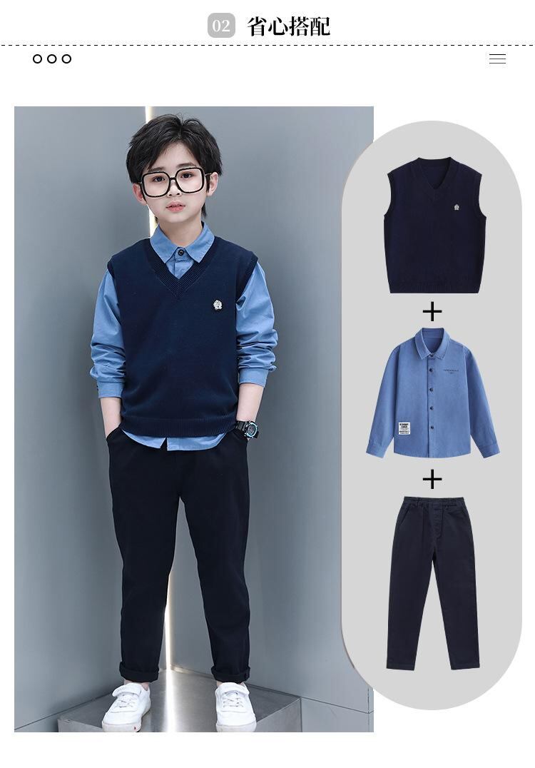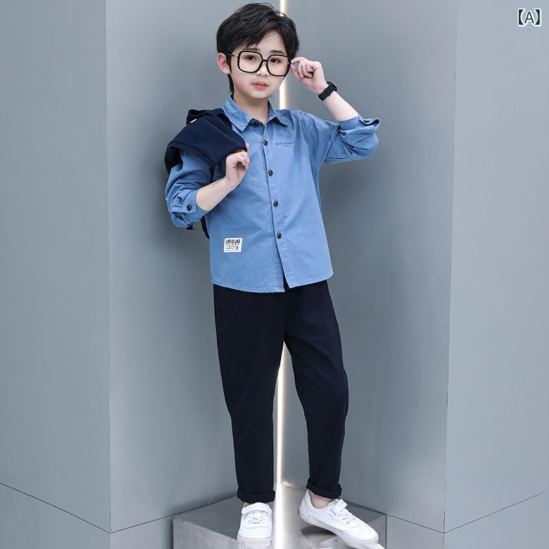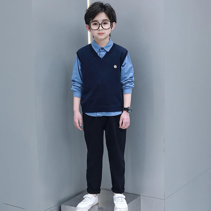 子供用スーツ フォーマル 男の子 3点セット (ベスト付き) ピアノ発表会 結婚式 卒園式 入学式 長袖シャツ 長ズボン 上下セット 春秋冬