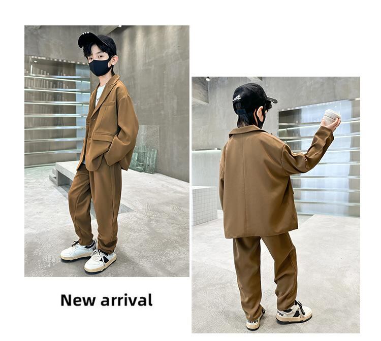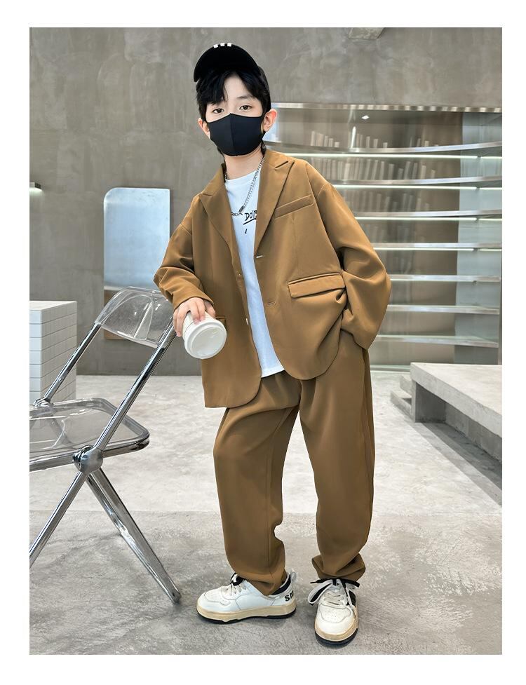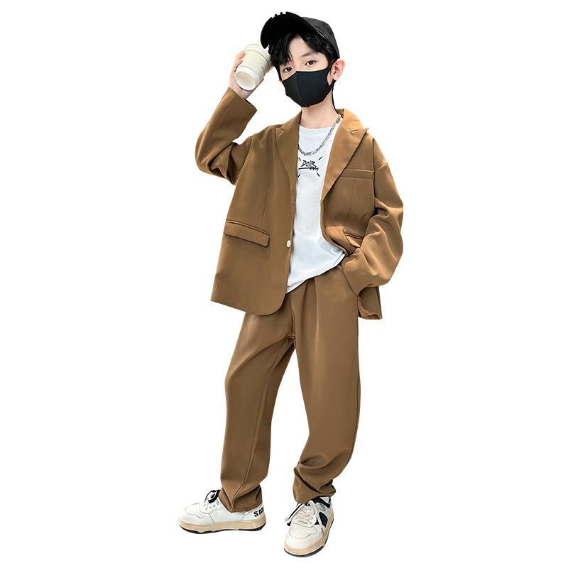 キッズ 男の子用 フォーマルスーツ 2点セット:ジャケット & パンツ 春秋 韓国風 子供用 結婚式 発表会 セレモニー パーティー お洒落 かわいい 綿 ブラック & ブラウン 120cm 130cm 140cm 150cm 160cm 170cm