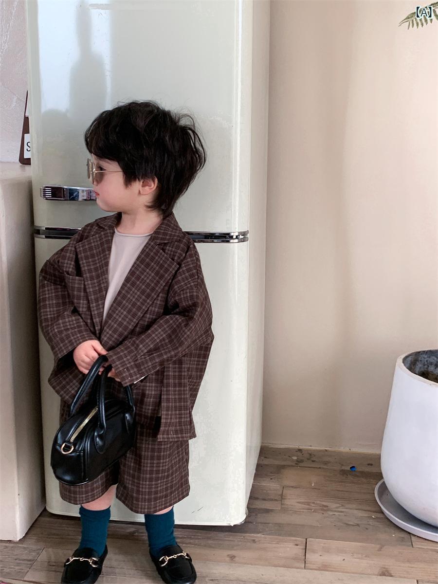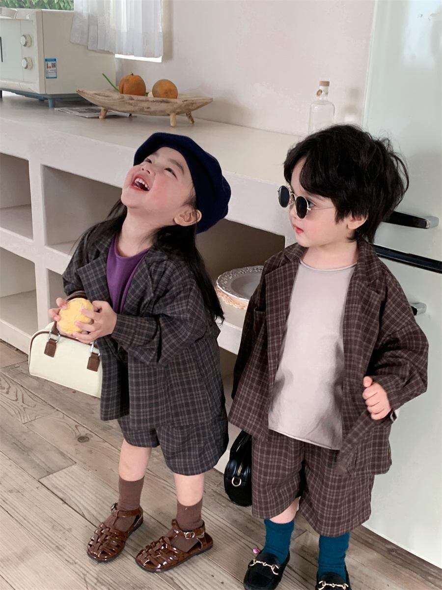 子供用スーツ 春秋 格子柄 ジャケット & パンツ 上下2点セット 男の子 女の子 フォーマル セレモニー コットン混紡 80cm 90cm 100cm 110cm 120cm 130cm