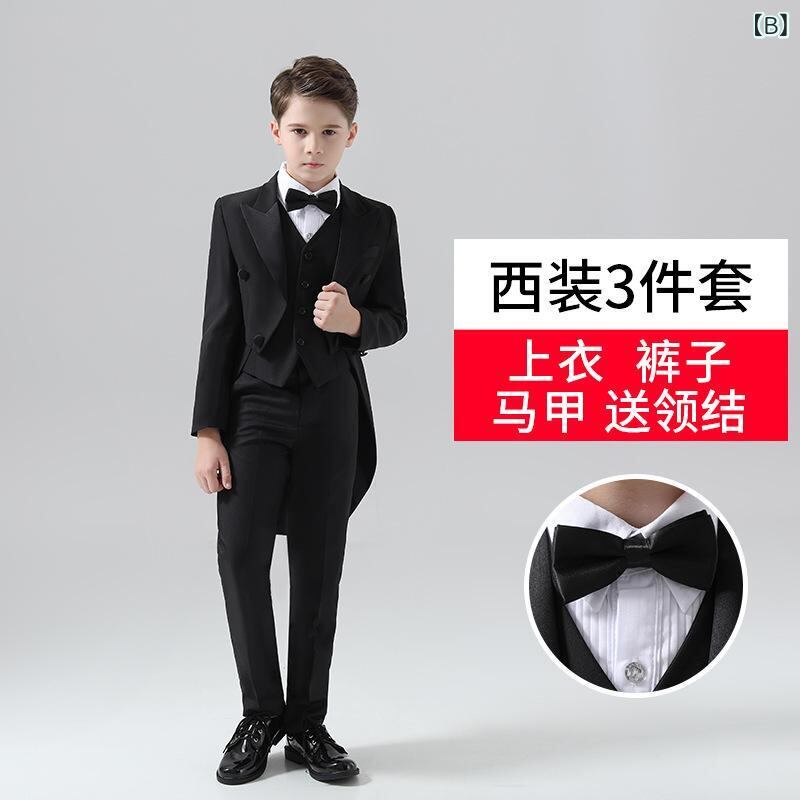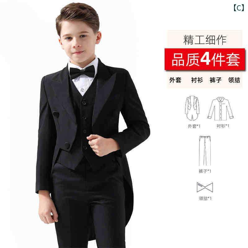 キッズ フォーマルスーツ 男の子 燕尾服 セットアップ 子供 発表会 演奏会 結婚式 ジャケット パンツ 蝶ネクタイ付き 4点セット 無地 ポリエステル 春秋冬