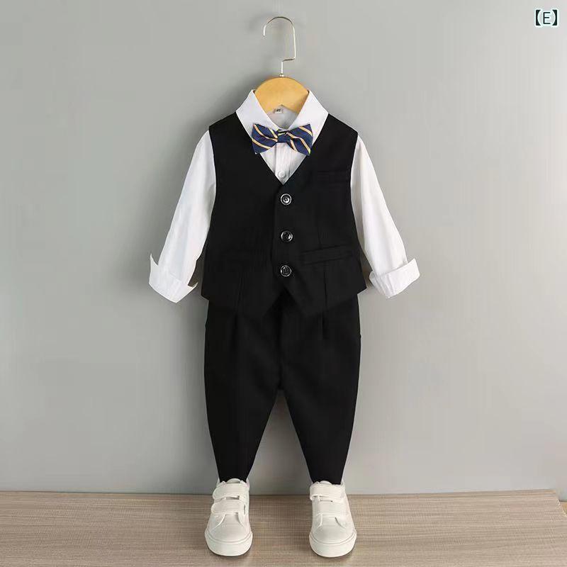 子供用スーツ 男の子 フォーマルウェア 秋冬 小さめスーツ セットアップ ピアノ発表会 イングリッシュスタイル ハンサム 花婿衣装 正装 長袖 長ズボン サスペンダー付き ブラック 黒 紺 ネイビー 無地