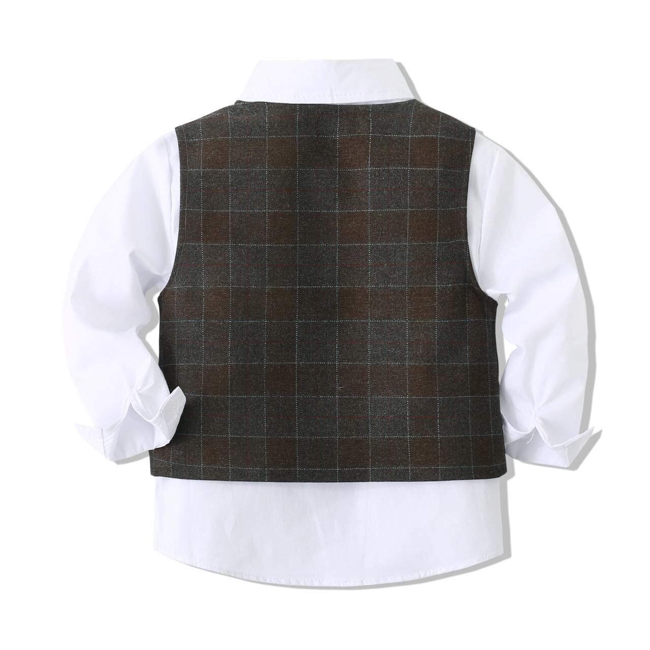 キッズ フォーマル スーツ 男の子 格子柄 子供 3点セット (ベスト、パンツ) 結婚式 発表会 パーティー