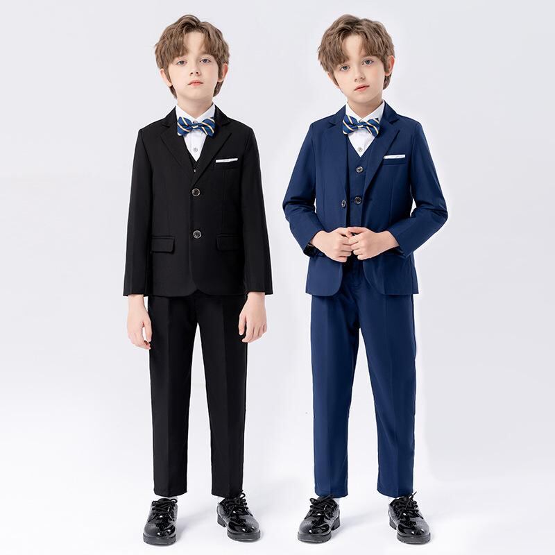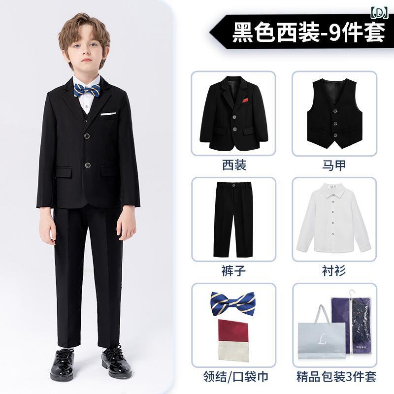 子供用フォーマルスーツ 男の子用キッズスーツ ピアノ発表会 演奏会 合唱 コンクール 結婚式 英国風ジャケット ベスト パンツ 蝶ネクタイ ポケットチーフ ハンカチーフ 8点セット 9点セット 90 100 110 120 130 140 150 160