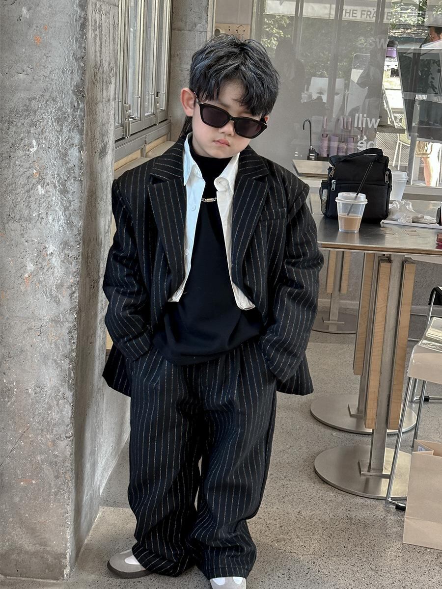 子供用スーツ パンツセットアップ 冬物 男の子用 ブリティッシュスタイル 厚手 ポリエステル ストライプ 100cm 110cm 120cm 130cm 140cm 150cm